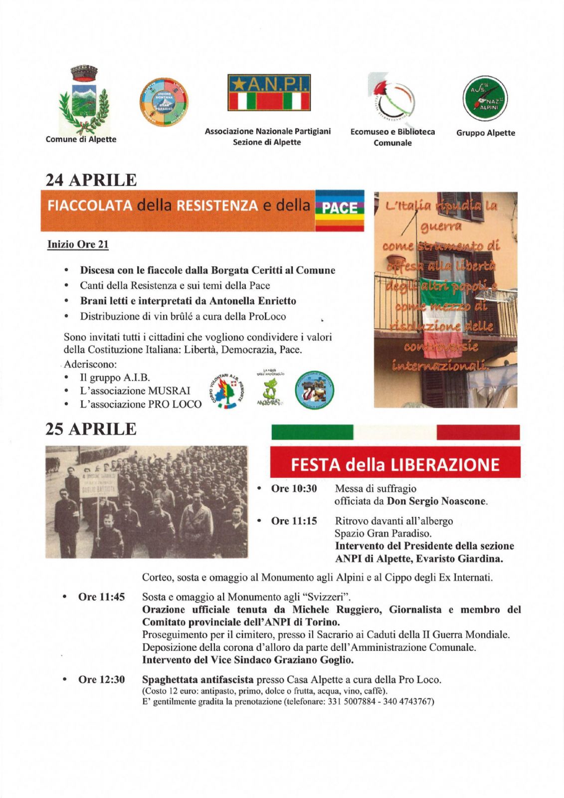 Fiaccolata della Resistenza, Pace e Festa della Liberazione