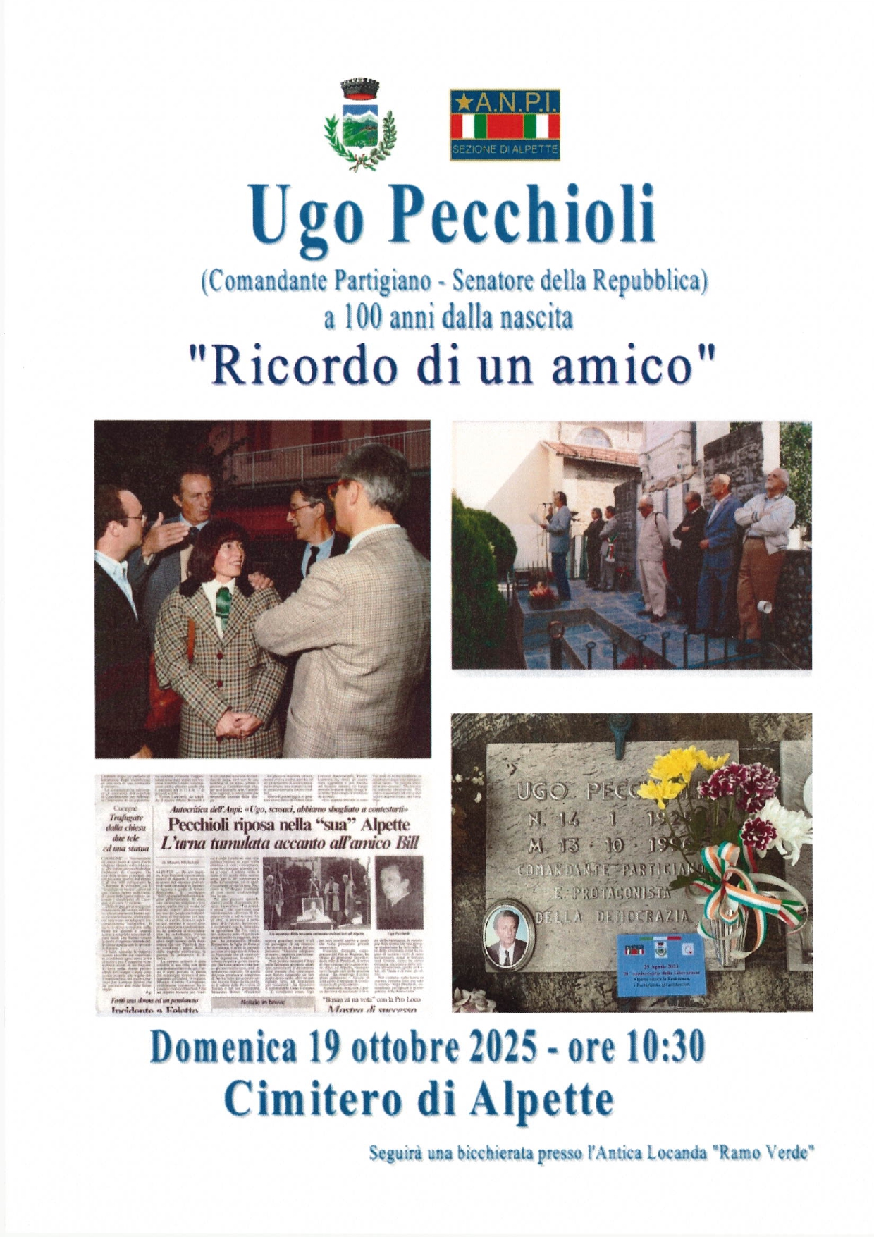 Commemorazione organizzata dall'A.N.P.I. - Sezione di Alpette in collaborazione con il Comune di Alpette, per commemorare nel centenario dalla nascita del Comandante Partigiano - Senatore della Repubblica, Ugo Pecchioli