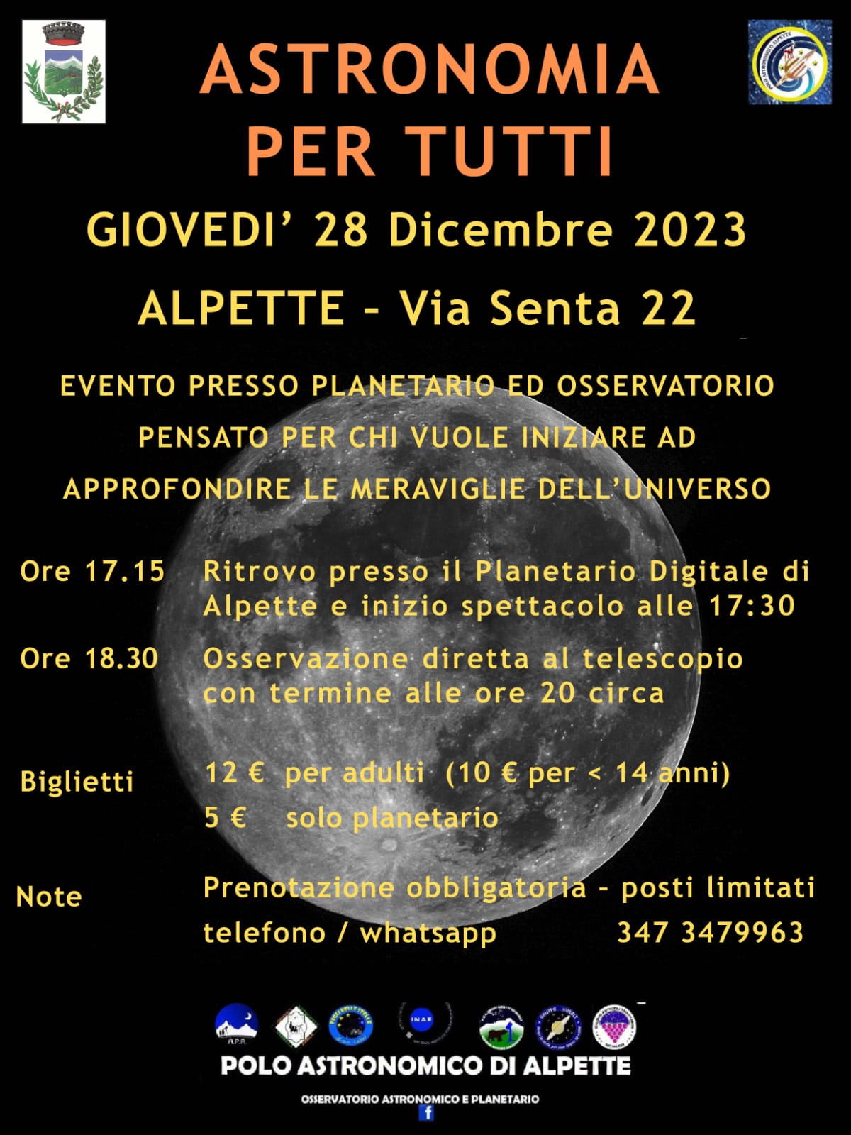 Ore 17.15 - ritrovo presso il Planetario Digitale di Alpette e inizio spettacolo alle 17.30