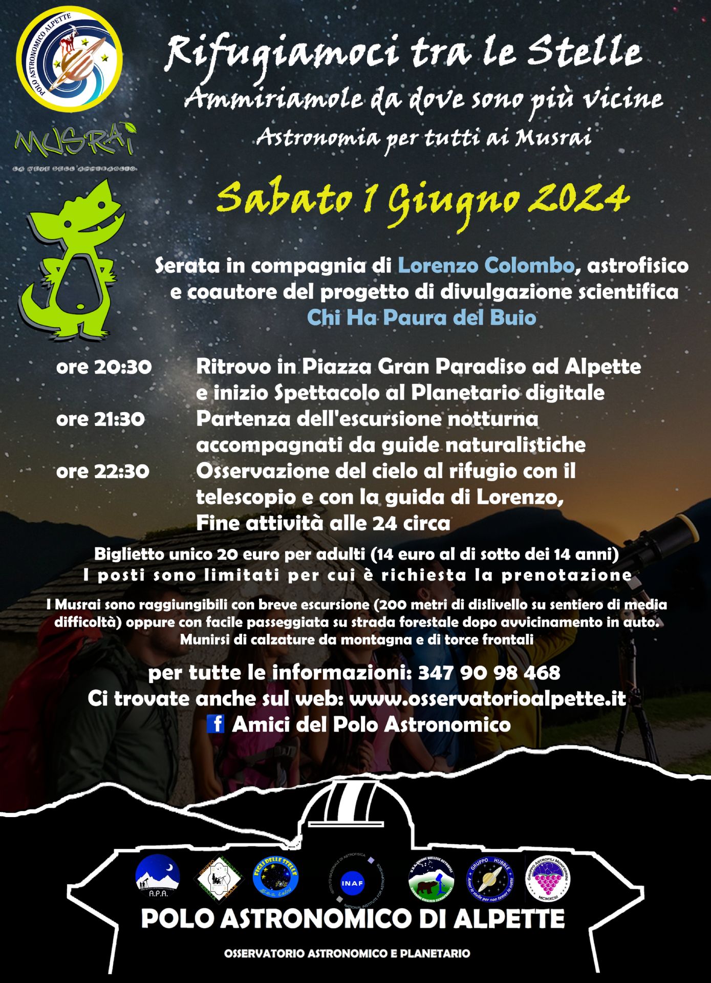 Vi abbiamo trovato un rifugio tra le stelle! Il Polo Astronomico di Alpette vi porta sui sentieri dei Musrai in compagnia di un amico speciale: Lorenzo Colombo.