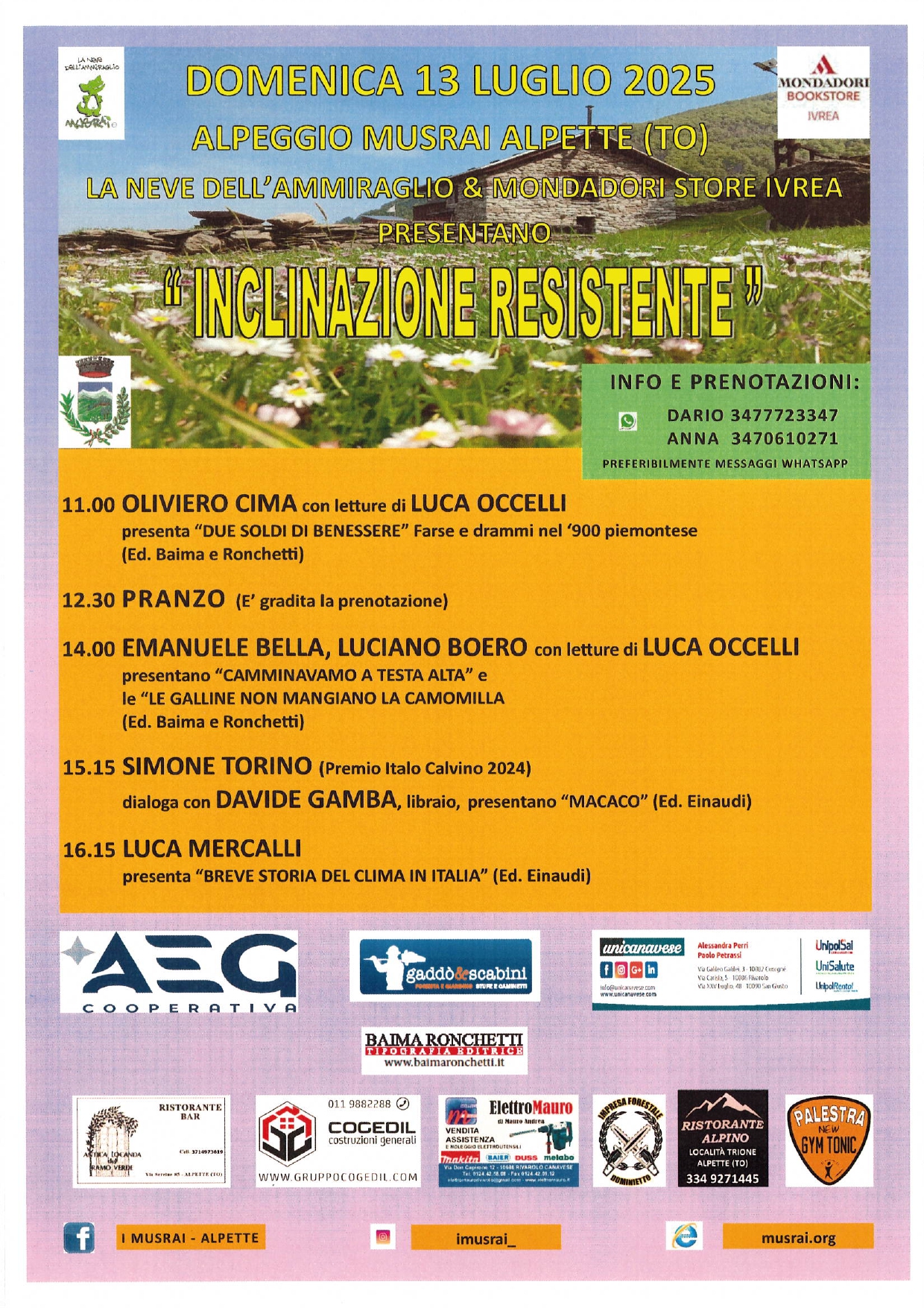 Manifestazione culturale organizzata dall'Associazione "La Neve dell'Ammiraglio" in collaborazione con "Mondadori Store Ivrea" - domenica 13 luglio 2025 - dalle ore 11,00 presso la Località Alpe Musrai.