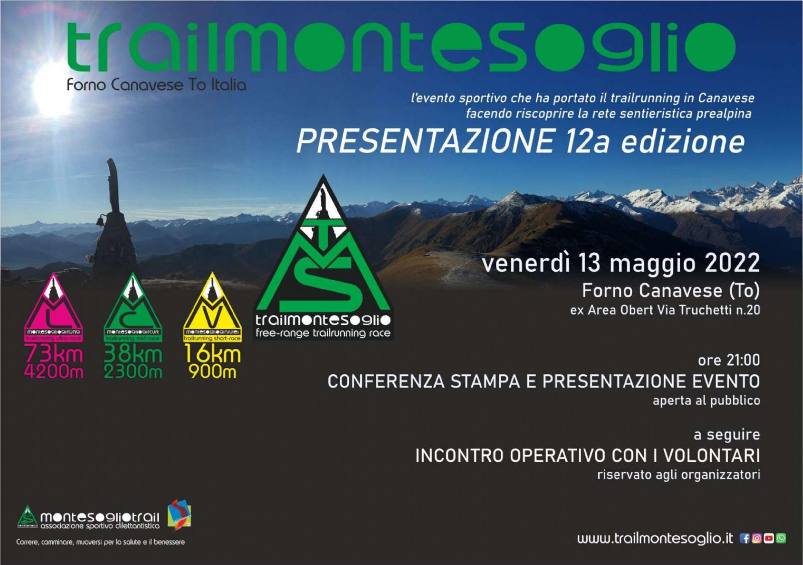 (TO), la Associazione Sportivo Dilettantistica Monte Soglio Trail presenterà la prossima edizione del Trail del