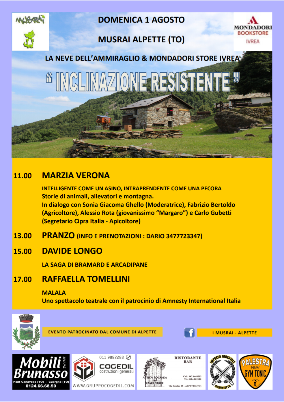 A causa del brutto tempo, l'evento è stato spostato al 29 agosto, sempre presso i Musrai e sempre con presentazioni culturali e teatrali.