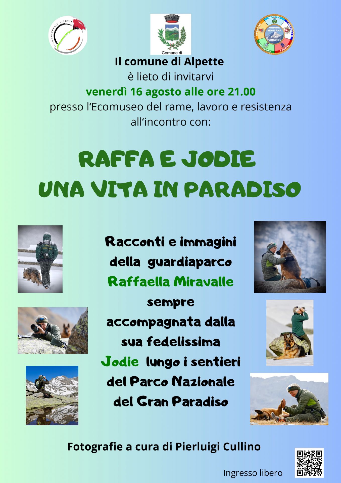 Racconti e immagini della Guardiaparco Raffaella sempre accompagnata dalla sua fedelissima Jodie lungo i sentirei del Parco Nazionale del Gran Paradiso.