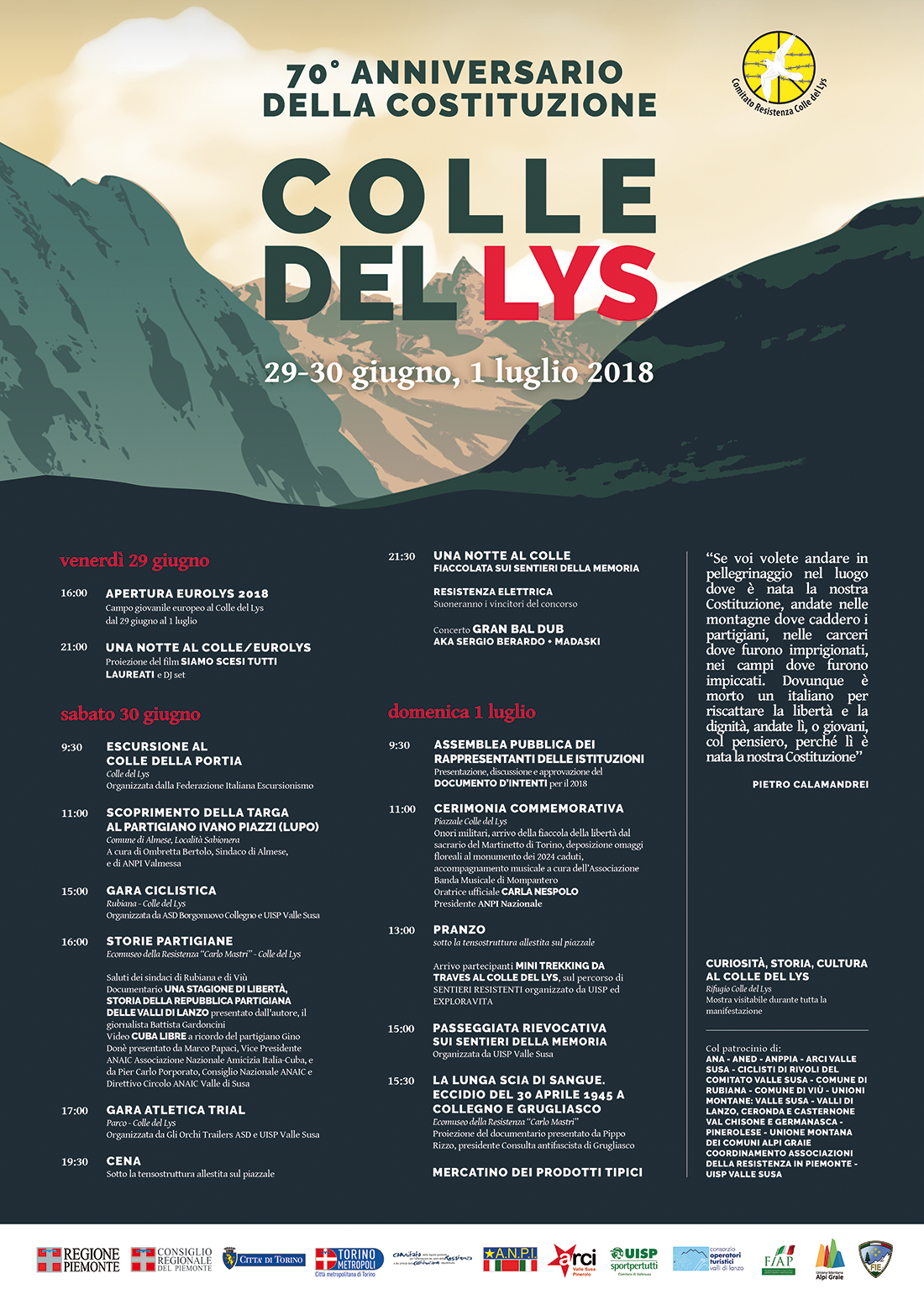 - 70° Anniversario della costituzione Colle del Lys - Programma/Locandina[.png 1,55 Mb - 27/06/2018]